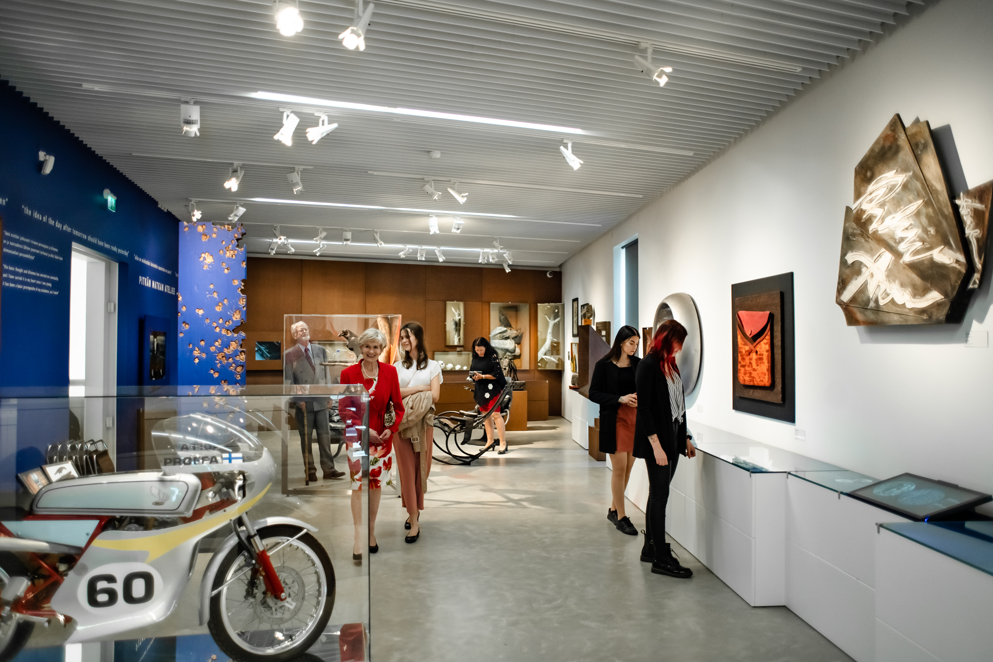 Vierailijoita Pitkän matkan ateljee -näyttelyssä. Kuva Tiia Ennala.
